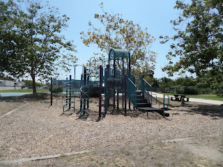 Estero Park is an open park with a 5-12 play structure over wood chips, basketball court, disc golf course and green area. It is next to the common gardens and teen center. The play structure is high and best for older kids. It is located at the end of Estero Rd in Isla Vista. http://www.ivparks.org/parks/descriptions/